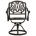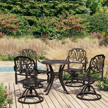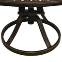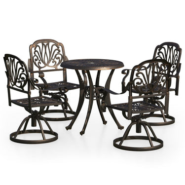 Cet ensemble de bistro, fabriqué en aluminium coulé, offre une expérience d'assise confortable pour vous et vos invités. Les chaises et la table d’extérieur, en fonte d’aluminium, sont robustes et durables. Le matériau résistant à la rouille et aux intempéries rend le mobilier idéal pour une utilisation à l'extérieur. Ces chaises d’extérieur disposent de bases rondes stables qui permettent un mouvement de pivotement en douceur et confortable afin que vous puissiez vous asseoir à n’importe quel angle. Les magnifiques motifs font de l'ensemble bistro un supplément élégant à votre espace extérieur. De plus, la table basse dispose d’un trou de parasol qui peut parfaitement accueillir votre parasol pour vous protéger du soleil ou de la pluie. Remarque : afin de prolonger la durée de vie des meubles d'extérieur, nous vous recommandons de les protéger avec une housse imperméable.