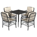 Savourez un café ou discutez avec votre famille et vos amis dans le jardin, l'arrière-cour ou sur le balcon avec cet ensemble de bistro confortable ! Matériau durable : la résine tressée, également connue sous le nom de poly rotin, est un matériau synthétique solide et nécessitant peu d'entretien qui ressemble au rotin naturel. Il est léger, facile à nettoyer et couramment utilisé pour les meubles d'extérieur en raison de sa durabilité et de ses propriétés de résistance aux intempéries.Expérience d'assise confortable : cet ensemble de meubles d'extérieur, doté de coussins épais, offre une expérience d'assise confortable.Housse amovible et lavable : ces coussins de siège sont dotés de housses amovibles pour un lavage et un entretien faciles.Dessus en verre : le dessus de la table d'extérieur est fabriqué en verre trempé solide et durable, ce qui le rend facile à nettoyer avec un chiffon humide et ajoute une touche d'élégance à votre espace extérieur. Bon à savoir :Pour que vos meubles d'extérieur restent beaux, nous vous recommandons de les protéger avec une housse imperméable.