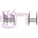 Ensemble de bistro 3 pcs avec coussins noir résine tressée