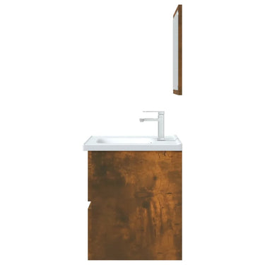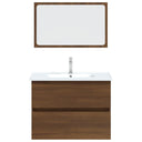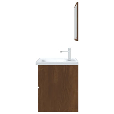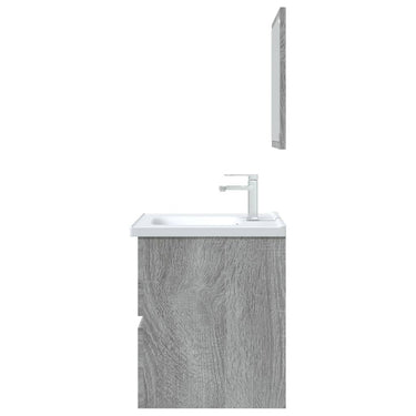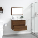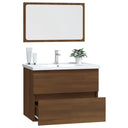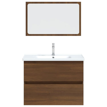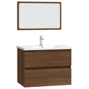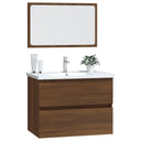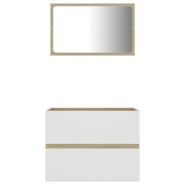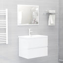 Avec cet ensemble de meubles de salle de bain, vous pouvez créer un espace de rangement supplémentaire pour votre salle de bain avec un aspect propre et ordonné. Les lignes épurées et le design élégant se fondent parfaitement dans votre salle de bain. L'ensemble de meubles, comprenant un miroir et une armoire, est fabriqué en bois d'ingénierie durable et stable. Cette armoire chic comprend 1 tiroir, offrant amplement d'espace de rangement pour ranger des articles dans votre salle de bain. Le dessus de l'armoire est idéal pour placer l'évier. Le miroir ajoute également une excellente apparence à votre décor intérieur. De plus, cet ensemble de salle de bain est facile à nettoyer avec un chiffon humide. Remarque : l'évier n'est pas inclus dans la livraison. Remarque : l'évier n'est pas inclus dans la livraison.