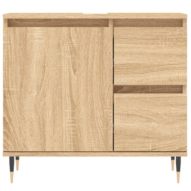 Cet ensemble de meubles de salle de bain tendance est un excellent supplément à votre salle de bain, ce qui lui donne une apparence ordonnée et saisissante ! Matériau durable : le bois d'ingénierie est d'une qualité exceptionnelle avec une surface lisse et présente également résistance, stabilité et résistance à l'humidité. Pieds en fer : les pieds en fer ajoutent un style moderne et calme à votre intérieur tout en assurant la stabilité.Grand espace de rangement : l'armoire de salle de bain offre diverses options de rangement et un espace spacieux pour ranger des articles dans votre salle de bain. Design pratique : le dessus du meuble-lavabo de salle de bain est idéal pour placer le lavabo. Attention :Pour éviter qu'il ne soit renversé, ce produit doit être utilisé avec le dispositif de fixation au mur fourni. Bon à savoir :Le lavabo n'est pas inclus dans la livraison.Les vis et les chevilles pour l'intérieur du mur ne sont pas incluses. Nous vous conseillons de trouver et d'utiliser des vis et des chevilles adaptées spécifiquement à vos murs. Si vous n'êtes pas sûr, vous pouvez consulter un professionnel. Veuillez lire et suivre chaque étape des instructions.