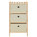 Étagère de rangement 3 paniers Tissu Bois de cèdre Beige