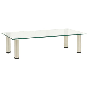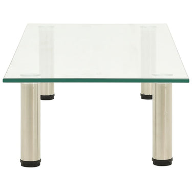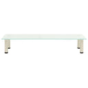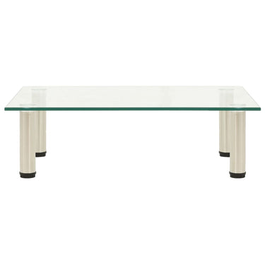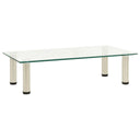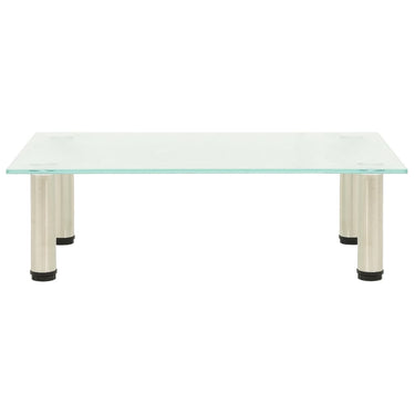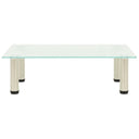 Ce meuble TV contemporain en verre trempé ajoute une touche moderne à votre salon et à votre chambre à coucher. Cette table de télévision est fabriquée en verre trempé épais et en acier inoxydable résistant, ce qui la rend extrêmement solide et sûre. Le dessus de table solide peut être utilisé pour placer la télévision, l'ordinateur portable et d'autres dispositifs multimédias. Vous pouvez également mettre vos boissons, vases et autres petits objets. De plus, la surface lisse est facile à nettoyer avec un simple chiffon humide.