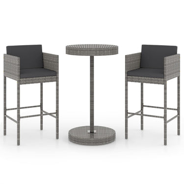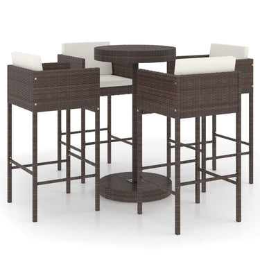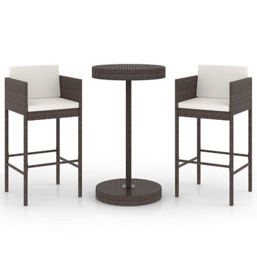 Meubles de bar de jardin 3pcs et coussins Résine tressée Marron