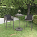 Cet ensemble élégant de bar de jardin vous permet de passer des moments agréables et confortables avec votre famille et vos amis. Fabriqué en rotin PE résistant aux intempéries et à l'eau, cet ensemble de bar d'extérieur est facile à nettoyer, résistant et adapté à un usage quotidien. Le cadre en acier revêtu de poudre rend la table et les tabourets robustes et durables. Le plateau rond est idéal pour poser des boissons, de la nourriture ou des objets décoratifs. Le repose-pieds et les coussins ajoutent un confort d'assise supplémentaire au tabouret. Grâce à la construction légère, tous les éléments sont faciles à déplacer. Remarque : afin de prolonger la durée de vie des meubles d'extérieur, nous vous recommandons de les protéger avec une housse imperméable.