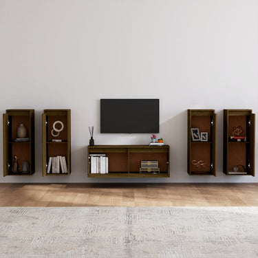 Meubles TV 5 pcs Marron miel Bois massif de pin