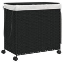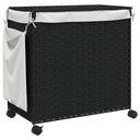 Panier à linge avec roulettes noir 60x35x60,5 cm résine tressée