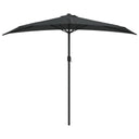 Cet élégant parasol de balcon est parfait pour créer de l'ombre et vous protéger des rayons UV nocifs. Fabriquée en polyester anti-UV et anti-décoloration, la couverture de parasol vous offre une protection optimale contre le soleil et est facile à nettoyer. Avec un diamètre de mât de 38 mm, il pourrait être monté sur le support ou au milieu de tables avec trou. Sa forme demi-ronde ajoute également au charme unique du parasol. Le mât en aluminium résistant, ainsi que les 5 nervures en acier robustes, rendent le parasol très stable et durable. Le parasol de jardin peut être facilement ouvert et fermé grâce au mécanisme à manivelle. Veuillez noter que le socle de parasol n'est pas inclus dans la livraison. Nous vous recommandons de traiter le tissu du parasol avec un spray imperméabilisant s'il est soumis à des fortes précipitations.