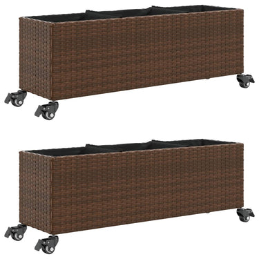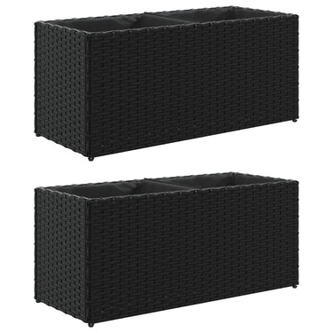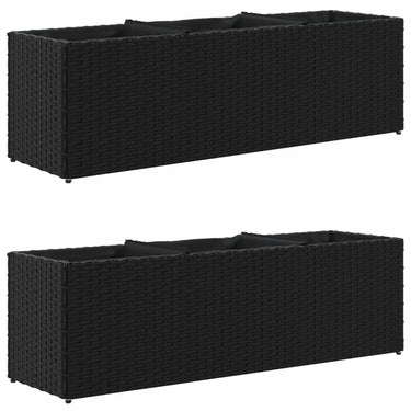 Plantenbakken met 3 potten 2 st 105x30x32 cm poly rattan zwart
