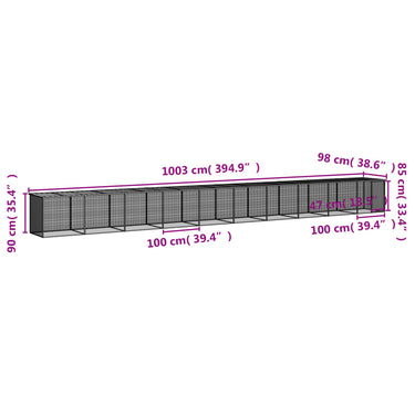 Poulailler avec toit anthracite 403x98x90 cm acier galvanisé