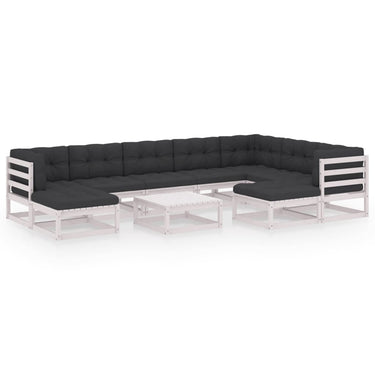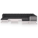 Salon de jardin 10 pcs avec coussins Blanc Bois de pin massif