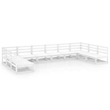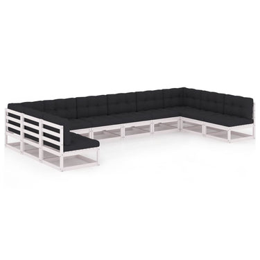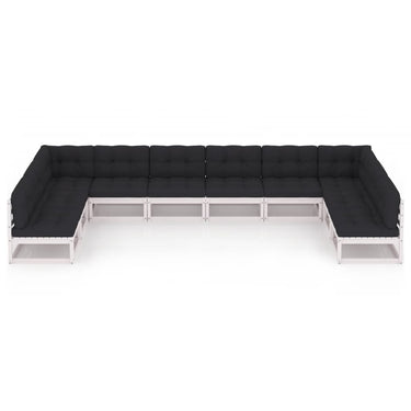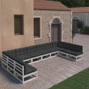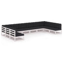Salon de jardin 10 pcs avec coussins Blanc Bois de pin massif