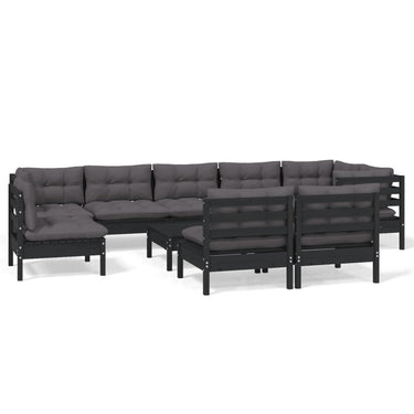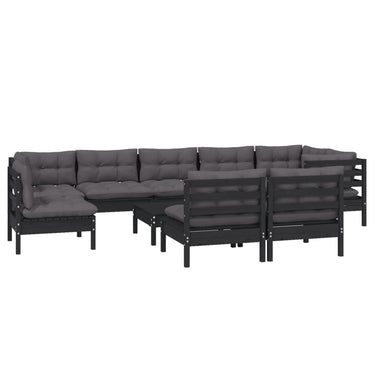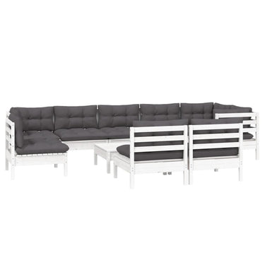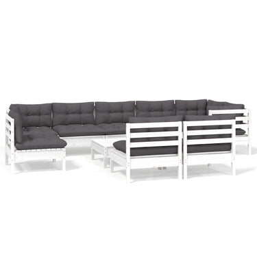 Salon de jardin 10 pcs avec coussins blanc bois de pin massif