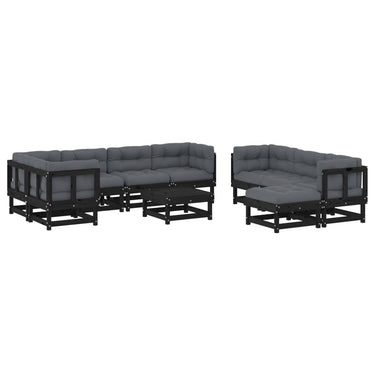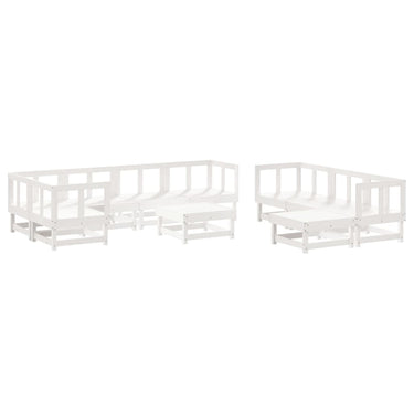 Salon de jardin 10 pcs avec coussins blanc bois massif