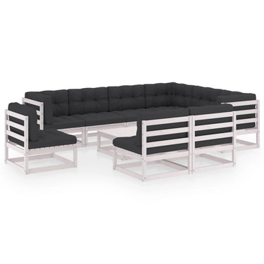 Salon de jardin 10 pcs avec coussins Bois de pin massif