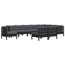 Salon de jardin 10 pcs avec coussins gris bois de pin massif