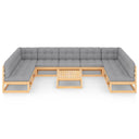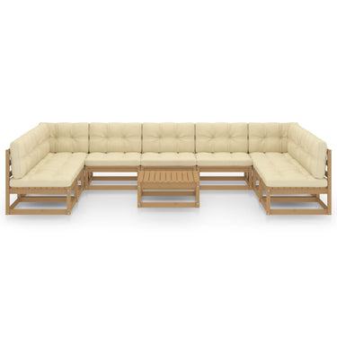Salon de jardin 10 pcs avec coussins Marron miel Bois de pin