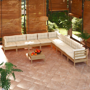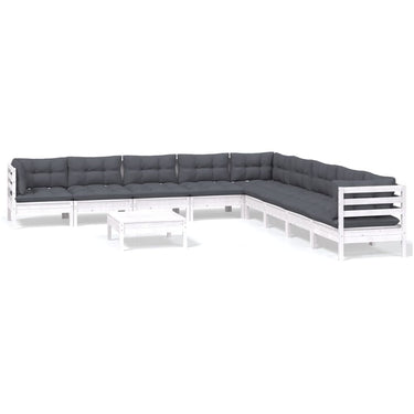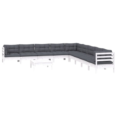 Salon de jardin 10 pcs avec coussins blanc bois de pin massif