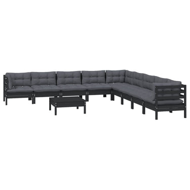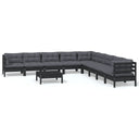 Salon de jardin 10 pcs avec coussins Noir Bois de pin massif