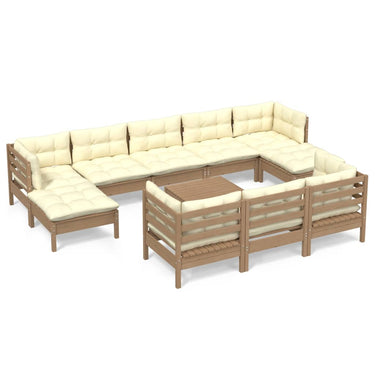 Salon de jardin 11 pcs avec coussins blanc bois de pin solide