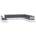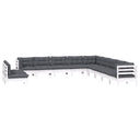 Salon de jardin 11 pcs avec coussins blanc bois de pin solide