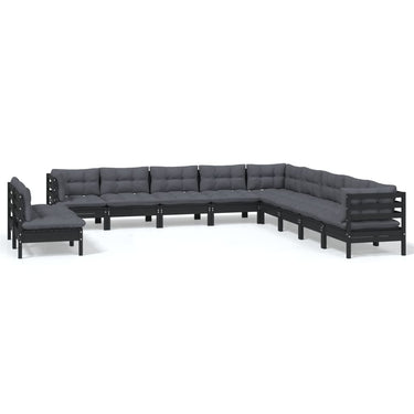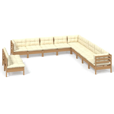 Salon de jardin 11 pcs avec coussins crème Bois de pin solide