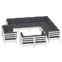 Salon de jardin 11 pcs avec coussins blanc bois de pin solide