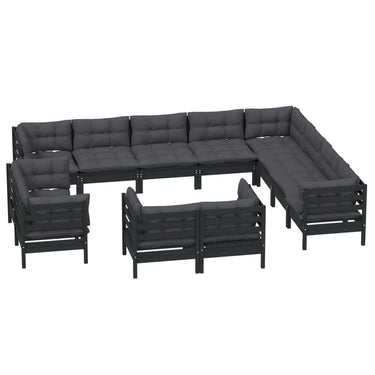 Salon de jardin 12 pcs avec coussins crème Bois de pin massif