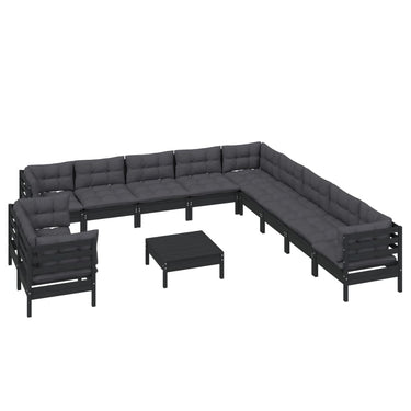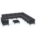 Salon de jardin 12 pcs avec coussins gris Bois de pin massif
