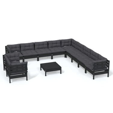 Salon de jardin 12 pcs avec coussins Noir Bois de pin solide