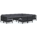 Salon de jardin 13 pcs avec coussins blanc bois de pin solide