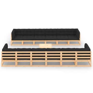 Salon de jardin 13 pcs avec coussins Marron miel Bois de pin