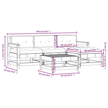 Salon de jardin 5 pcs avec coussins blanc bois massif