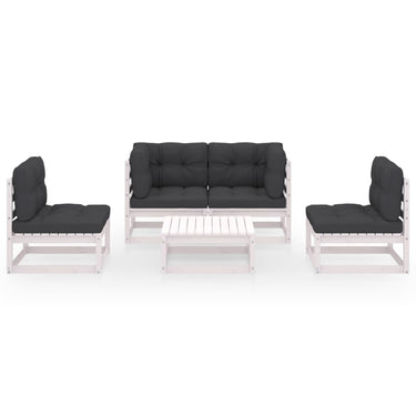 Salon de jardin 5 pcs Blanc Bois de pin massif
