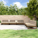 Ce salon de jardin en bois, qui se démarque par son design à lattes, sera un excellent supplément à votre jardin, patio ou terrasse pour profiter d'un moment agréable avec votre famille ou vos amis. Bois de pin massif : le bois de pin massif est un matériau naturel magnifique. Le bois de pin a un grain droit et les nœuds donnent au matériau son aspect caractéristique et rustique.Cadre robuste et stable : le cadre en bois rend l'ensemble de salon robuste et stable pour une utilisation quotidienne à l'extérieur.Expérience d'assise confortable : le dossier ajoute un confort d'assise supplémentaire au canapé d'extérieur.Design modulaire : le canapé est flexible et facile à déplacer. Vous pouvez le combiner avec d'autres segments modulaires de la boutique en ligne pour créer vos propres configurations de salon de jardin ! Bon à savoir :Les coussins ne sont pas inclus dans la livraison.Pour que vos meubles d'extérieur restent beaux, nous vous recommandons de les protéger avec une housse imperméable.