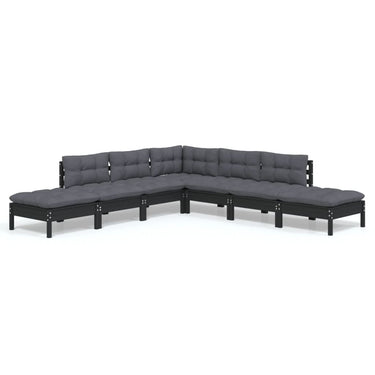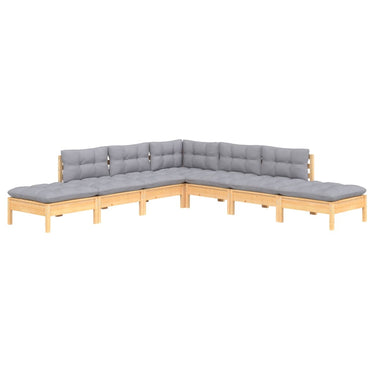 Salon de jardin 7 pcs avec coussins gris bois de pin