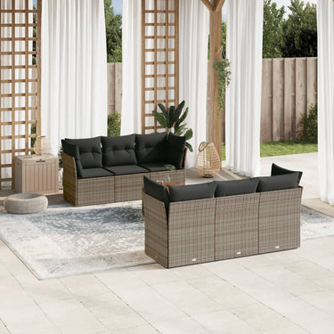Salon de jardin 7 pcs avec coussins noir résine tressée