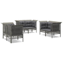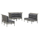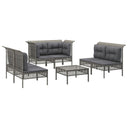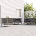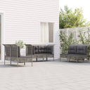 Profitez d'un moment de café confortable dans votre espace extérieur avec cet ensemble de salon de jardin ! C'est un complément parfait à votre jardin et à votre terrasse, créant une impression durable ! Matériau résistant aux intempéries : la résine tressée, également connue sous le nom de rotin poly, résiste aux intempéries et est facile à nettoyer. Elle reste belle à l'extérieur pendant une longue période. Elle offre une excellente qualité, commodité et un aspect esthétique.Cadre robuste : le cadre en acier enduit de poudre rend l'ensemble de salon d'extérieur robuste et stable pour une utilisation quotidienne à l'extérieur.Expérience d'assise confortable : les dossiers ajoutent un confort d'assise supplémentaire pour l'ensemble de salon de terrasse. De plus, les coussins bien rembourrés offrent du confort pendant votre temps d'assise.Conception modulaire : chaque article est flexible et facile à déplacer, vous pouvez donc la combiner avec d'autres segments modulaires dans la boutique en ligne pour créer vos propres configurations de salon de jardin ! Remarque :Pour que vos meubles d'extérieur restent beaux, nous vous recommandons de les protéger avec une housse imperméable.