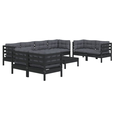 Salon de jardin 9 pcs avec coussins bois de pin massif