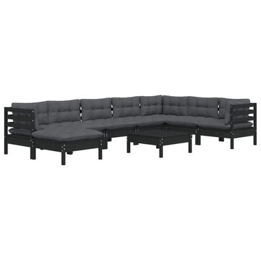 Salon de jardin 9 pcs avec coussins gris bois de pin massif