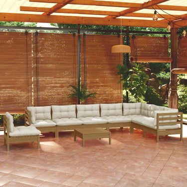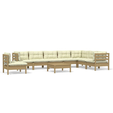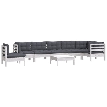Salon de jardin 9 pcs avec coussins blanc bois de pin massif