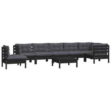 Salon de jardin 9 pcs avec coussins gris bois de pin massif