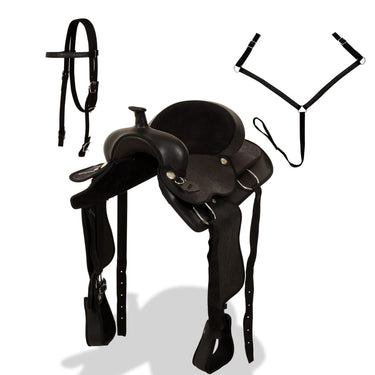 Selle, bridon et col de poitrine Cuir véritable 16 po Noir