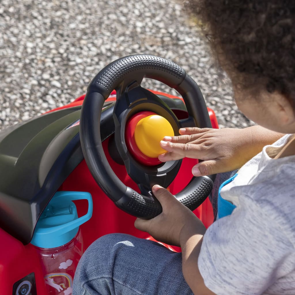 Le jouet pour enfants est parfait pour tous les passionnés de voitures ! Les parents peuvent emmener leurs petits faire une longue promenade et ranger leurs collations et boissons préférées dans le compartiment sous le capot. Le siège moderne permet à votre tout-petit de rouler confortablement tout en utilisant le guidon réaliste pour un jeu de simulation de longue durée. Le Buggy GT possède un volant réaliste avec un klaxon !