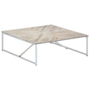 Cette table basse dégage un charme attrayant. Ce sera un véritable centre d'attention pour votre intérieur. La table basse est en bois de manguier solide, un bois dur à grains denses. Le bois brut de manguier a non seulement la force de supporter le poids, mais résiste également à l'usure du temps. En conséquence, cette table basse en bois magnifiquement conçue est extrêmement stable, durable et captivante. De plus, cette table d'appoint est entièrement faite à la main et les grains de bois raffinés rendent chaque meuble distinctif et légèrement différent l'un de l'autre. Le fer enduit de poudre ajoute à la robustesse de la table. Remarque importante : les grains de bois varient d'une pièce à l'autre, rendant chaque pièce unique. La livraison est aléatoire, ce qui garantit l'exclusivité et l'individualité de votre produit.