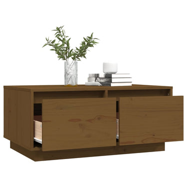 Ajoutez une touche d'élégance à votre décoration intérieure avec cette élégante table basse en bois. Bois de pin massif : le bois de pin massif est un matériau naturel magnifique. Le bois de pin a un grain droit et les nœuds donnent au matériau son aspect caractéristique et rustique.Grand espace de rangement : cette table d'appoint dispose de 2 tiroirs, offrant un grand espace de rangement pour garder vos essentiels bien organisés et à portée de main.Dessus spacieux : le dessus spacieux de la table de canapé est parfait pour placer vos boissons, aliments et autres objets décoratifs.Cadre stable : le cadre en bois de la table de salon assure robustesse et stabilité. Remarque :Chaque produit est livré avec un manuel de montage dans la boîte pour un montage facile.