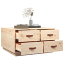 Cette table basse en bois à la fois simple et fonctionnelle s'harmonise parfaitement avec n'importe quel décor intérieur et ajoute une touche unique. Matériau naturel : le bois de pin massif est un matériau naturel magnifique. Le bois de pin a un grain droit et les nœuds donnent au matériau son aspect caractéristique et rustique.Grand espace de rangement : la table de salon dispose de 4 tiroirs pour fournir un espace suffisant pour ranger les objets privés et les objets fréquemment utilisés.Dessus de table robuste : le bout de canapé dispose d'un dessus robuste, parfait pour placer vos boissons, votre nourriture et d'autres objets décoratifs. Remarque :Chaque produit est livré avec un manuel de montage dans la boîte pour un montage facile.