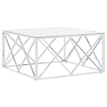 Table basse argenté 80x80x40 cm acier inoxydable et verre