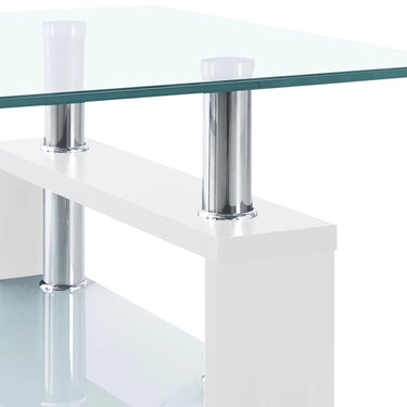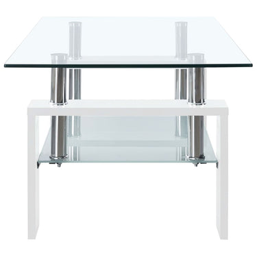 Ajoutez une touche de charme moderne à votre intérieur actuel avec cette table basse simple et élégante ! Cette table d’appoint a un dessus en verre trempé. Elle est également soutenue par des pieds en mélamine, ce qui la rend extrêmement sûre et stable. Grâce à sa conception à 2 couches, ce bout de canapé vous offre un espace de rangement supplémentaire et contribue également à sa construction robuste ! De plus, la table d'appoint est facile à nettoyer avec un chiffon humide.