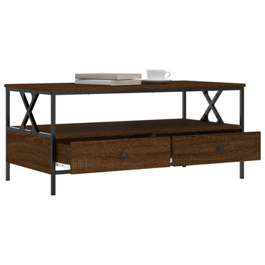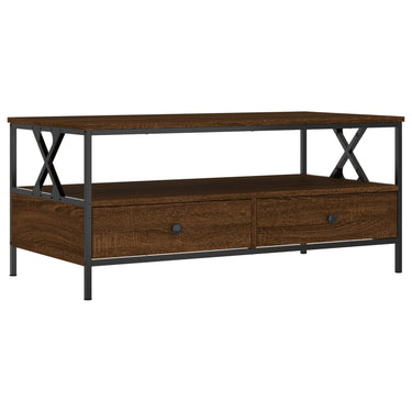 Ajoutez une touche d'élégance à votre salon avec cette élégante table basse. Matériau durable : la table d'appoint est fabriquée en bois d'ingénierie. Le bois d'ingénierie est d'une qualité exceptionnelle avec une surface lisse et présente également résistance, stabilité, et résistance à l'humidité.Grand espace de rangement : ce bout de canapé dispose de 2 tiroirs et 1 étagère, offrant un grand espace de rangement pour garder vos essentiels bien organisés et à portée de main.Dessus de table stable : le dessus de table stable de la table de salon est parfait pour placer des boissons, des aliments et d'autres objets décoratifs.Cadre robuste : le cadre de cette table de canapé en métal assure robustesse et stabilité.